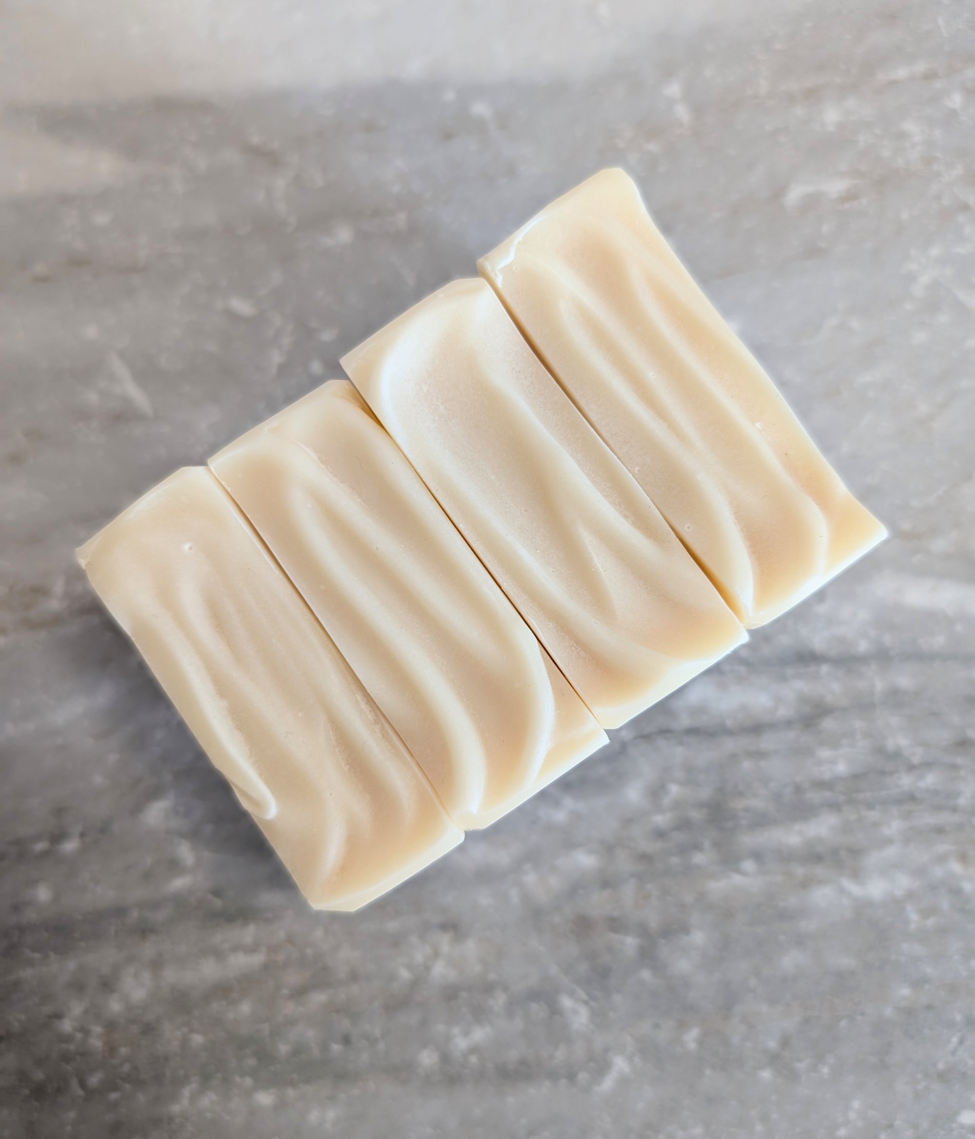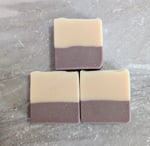Ingredients: saponified oils (beef tallow, olive oil, coconut oil, castor oil), goat milk, lavender essential oil, citric acid, raw honey, water, sodium lactate, purple brazilian clay, kaolin clay