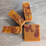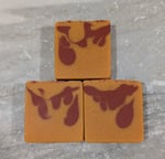 Ingredients: saponified oils & butters (olive oil, coconut oil, castor oil, cocoa butter), pumpkin puree, essential oil blend (bergamot, ginger, cinnamon, clove, nutmeg), coconut milk, sodium lactate, citric acid, maple syrup, water, kaolin clay, red brazilian clay, turmeric, red oxide, pumpkin powder
