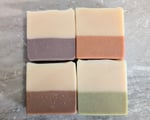Ingredients: saponified oils (beef tallow, olive oil, coconut oil, castor oil), goat milk, lavender essential oil, citric acid, raw honey, water, sodium lactate, purple brazilian clay, kaolin clay