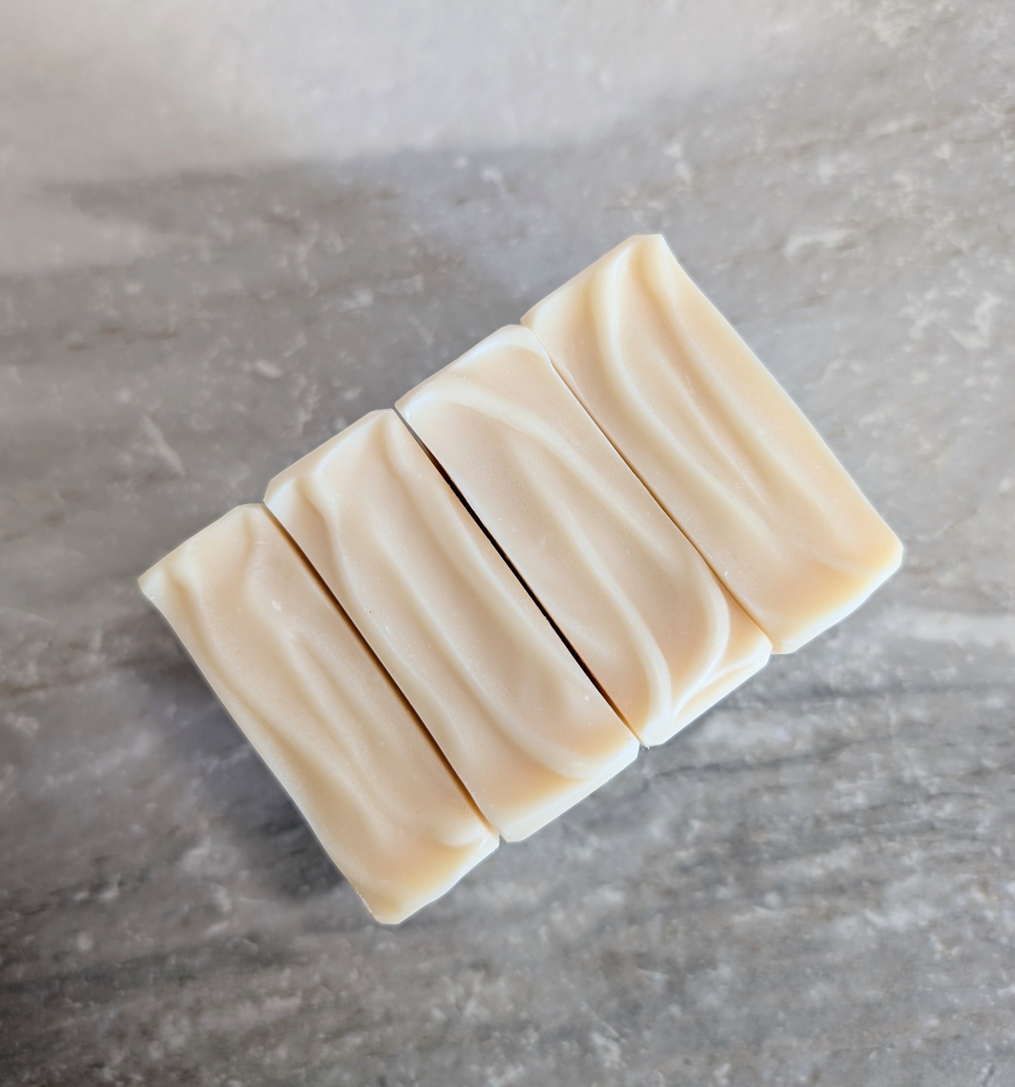 Ingredients: saponified oils (beef tallow, olive oil, coconut oil, castor oil), goat milk, essential oil blend (peppermint, spearmint), citric acid, raw honey, water, sodium lactate, spinach powder, kaolin clay
